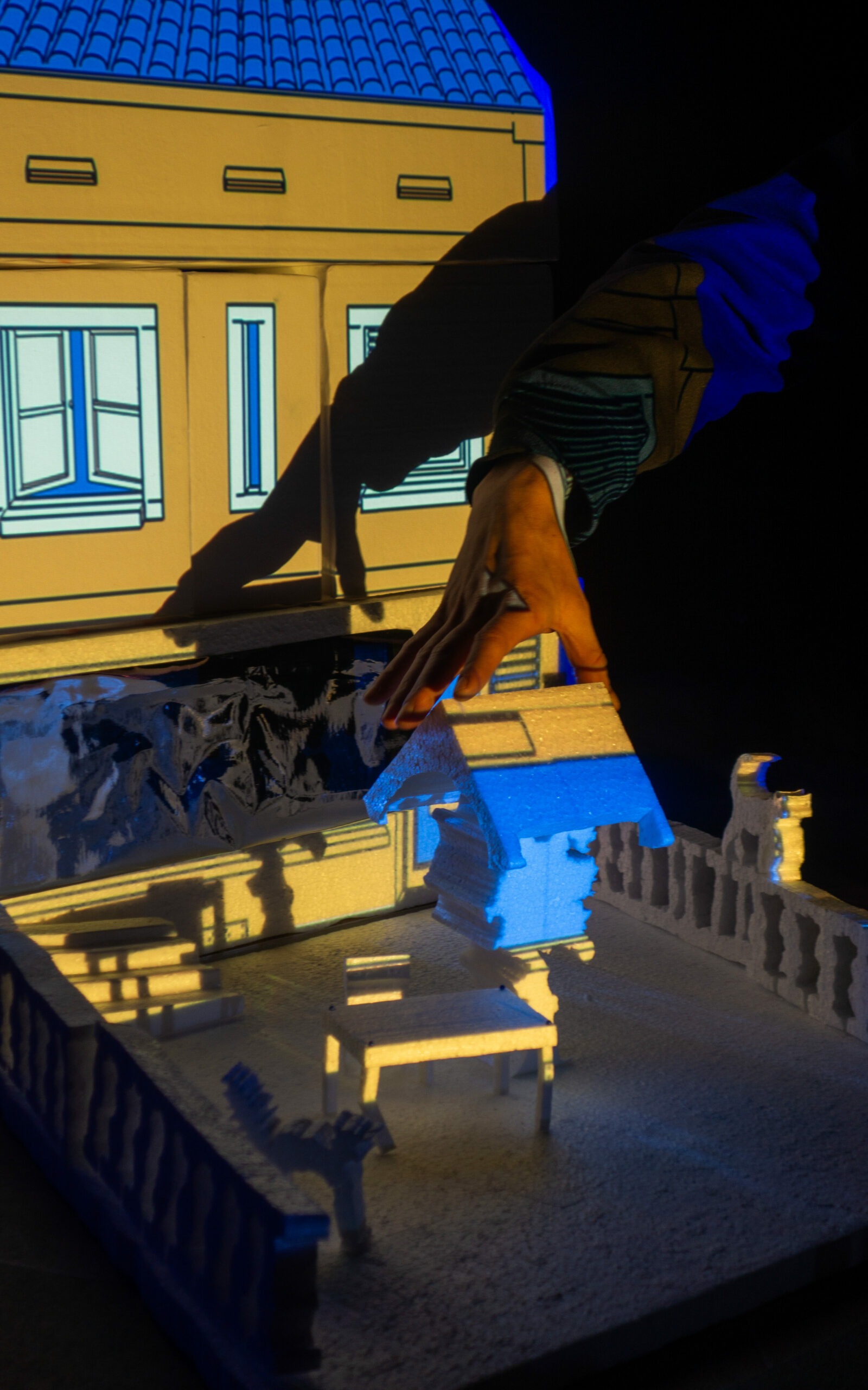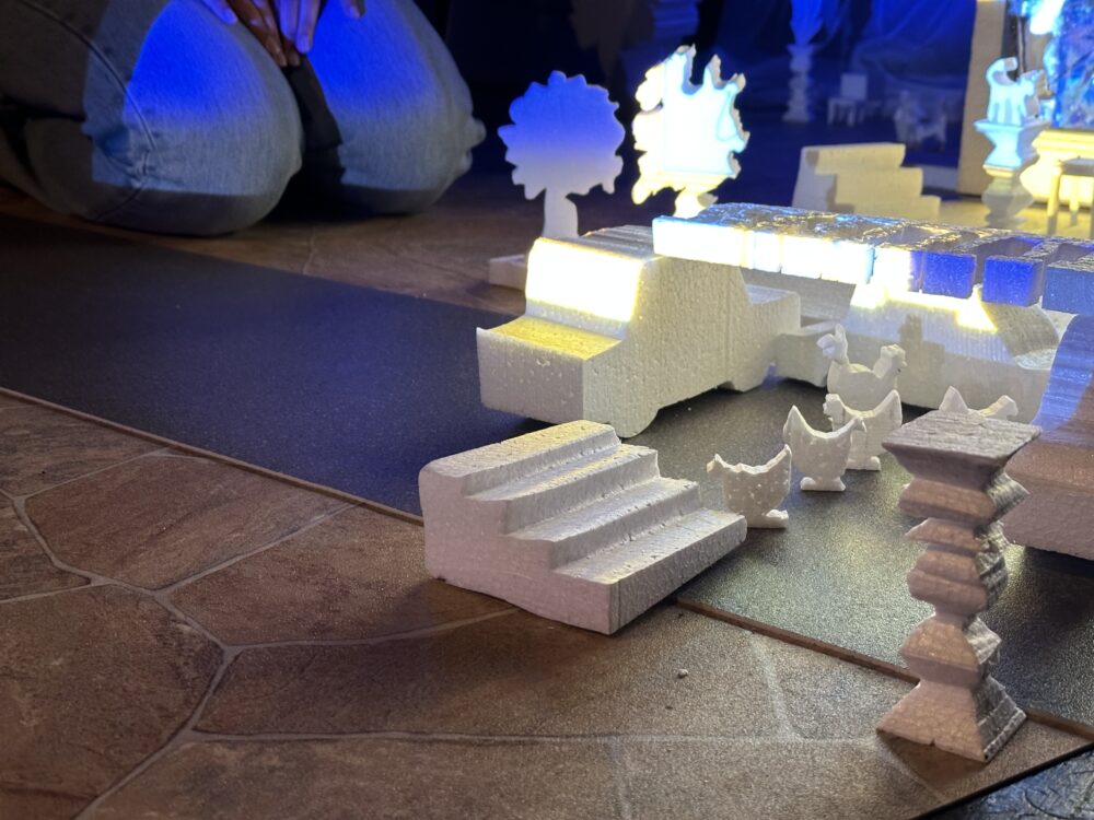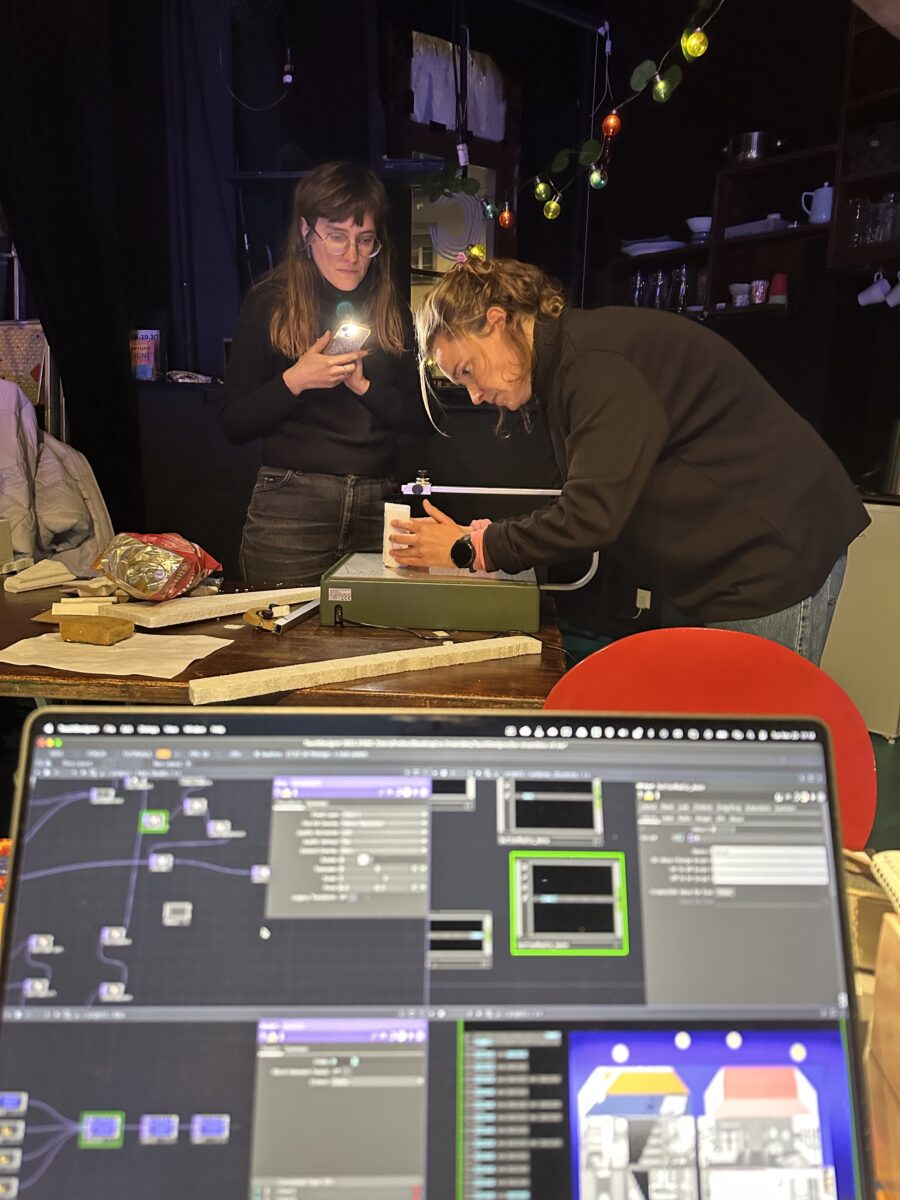 Entre octobre 2024 et avril 2025, nous avons avancé les tests de matériaux pour les modules ainsi que les tests d’un game design à l’intersection entre modules physiques et animations numériques. Après une attente de réponse positive de financements, en novembre 2025, nous avons repris le travail avec une résidence au Centre Culturel des Grottes.