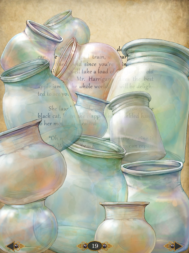 Si l’on revient à Tiny Bang Story, le jeu, on n’a à priori pas besoin de déplacer des éléments dans tous les sens. Si on peut déplacer un élément, c’est pour une volonté scénaristique. S’il n’y avait rien sous l’élément à déplacer, c’était pour nous mettre sur une fausse piste –ouvrir les possibilités du joueur. Ainsi lorsque, dans le livre, on se retrouve avec une page pleine de pots de verre à déplacer pour pouvoir lire le texte, le balayage de ces éléments intempestifs semble vain.