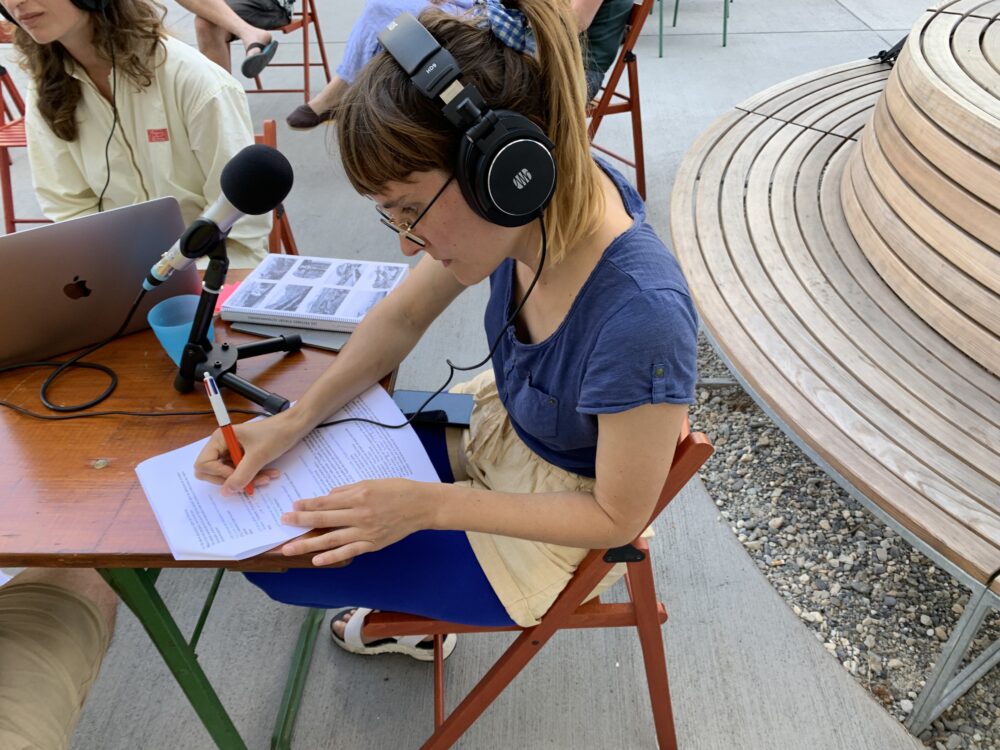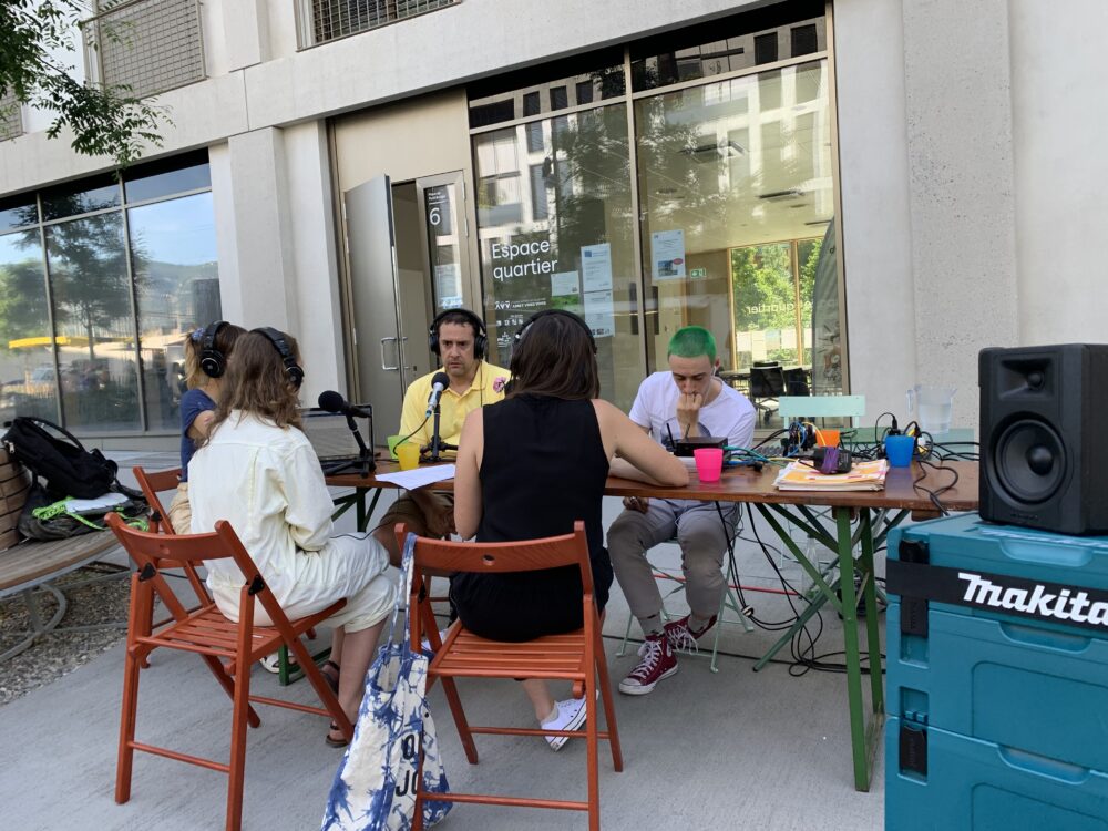 Une série de vidéos, portraits d’artistes par Florian Geyer, accompagne le projet radio. Le morceau du générique est composé de mots lancés au sein de l’équipe, de mots issus d’un atelier « glossaire sensible », et spécifiquement de Nourrédine Ben Bachir (en italiques ci-dessous) qui m’a le plus inspirée. Le visuel a été animé par Louise Nelson, avec les dessins de Fred Fivaz.
