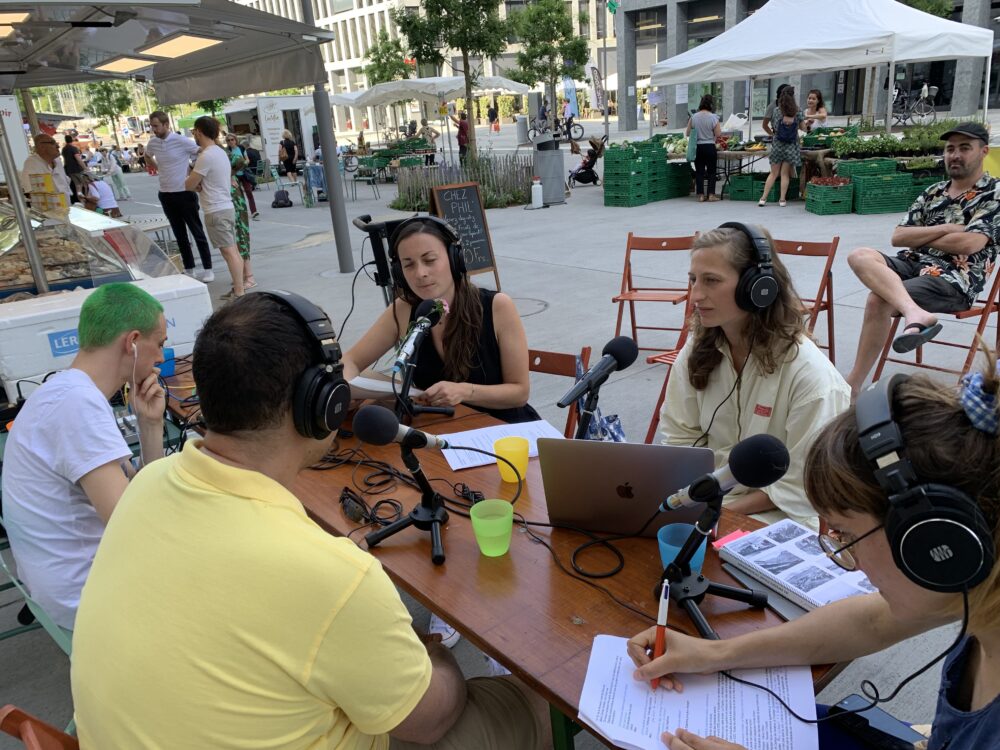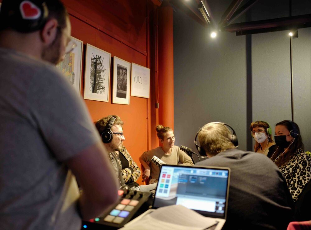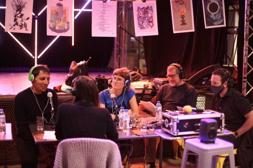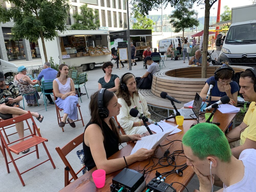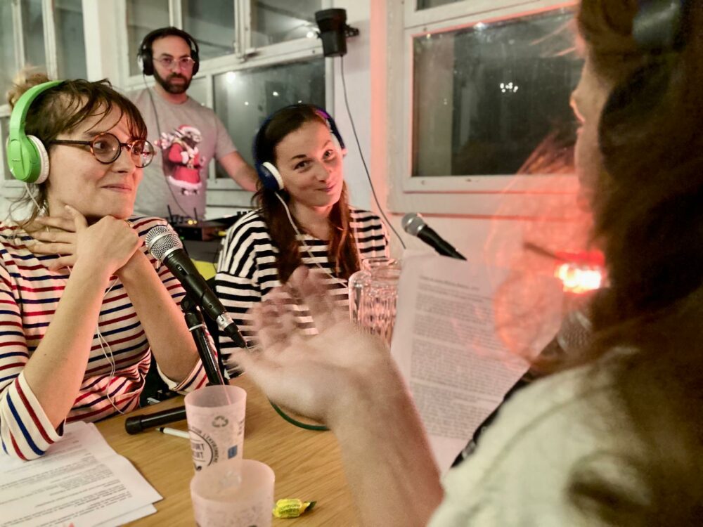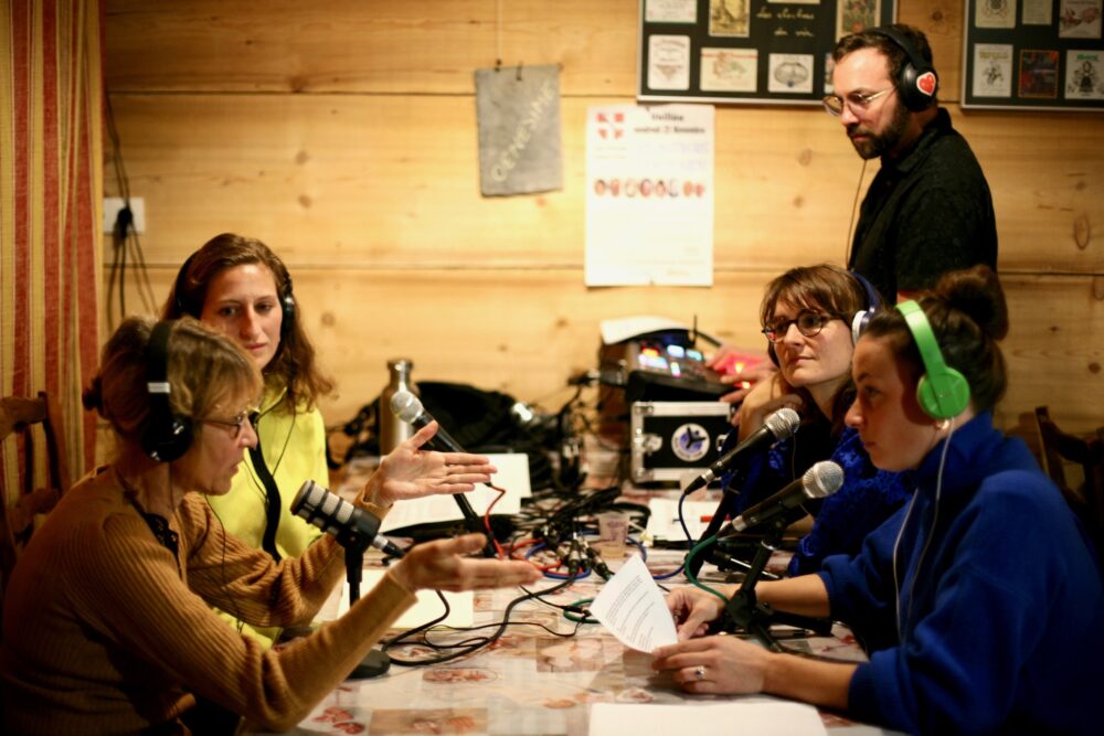 Je participe au choix des personnes à rencontrer, je rédige et dit les textes poétiques d’introduction, je choisis et lis des textes d’autres auteurices, pour faire écho aux thématiques abordées, je fais le fil rouge des émissions. Je suis force bleue. Avec moi, force rose (Clémence Lehec) fait les interviews, force jaune (Delphine Ayrton) donne la parole au public et organise des jeux. de mots. Benoît Frech s’occupe de la technique, et Nicolas Croquet supervise le projet.