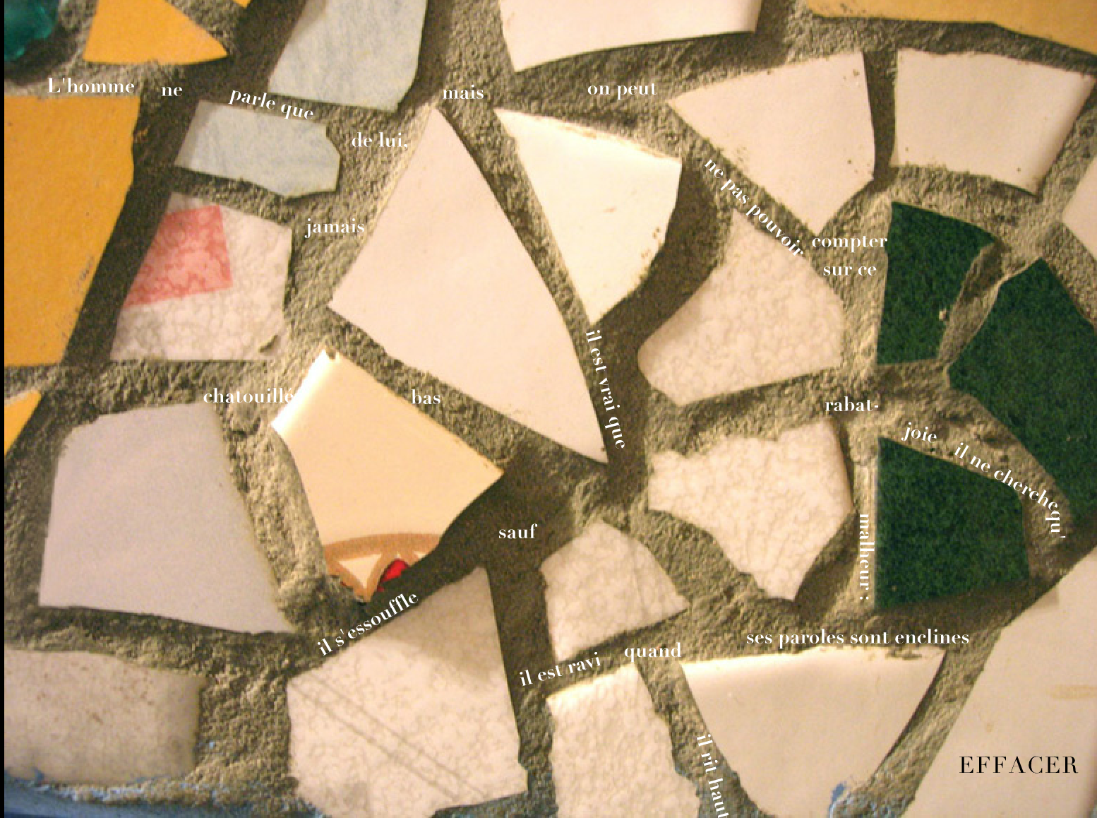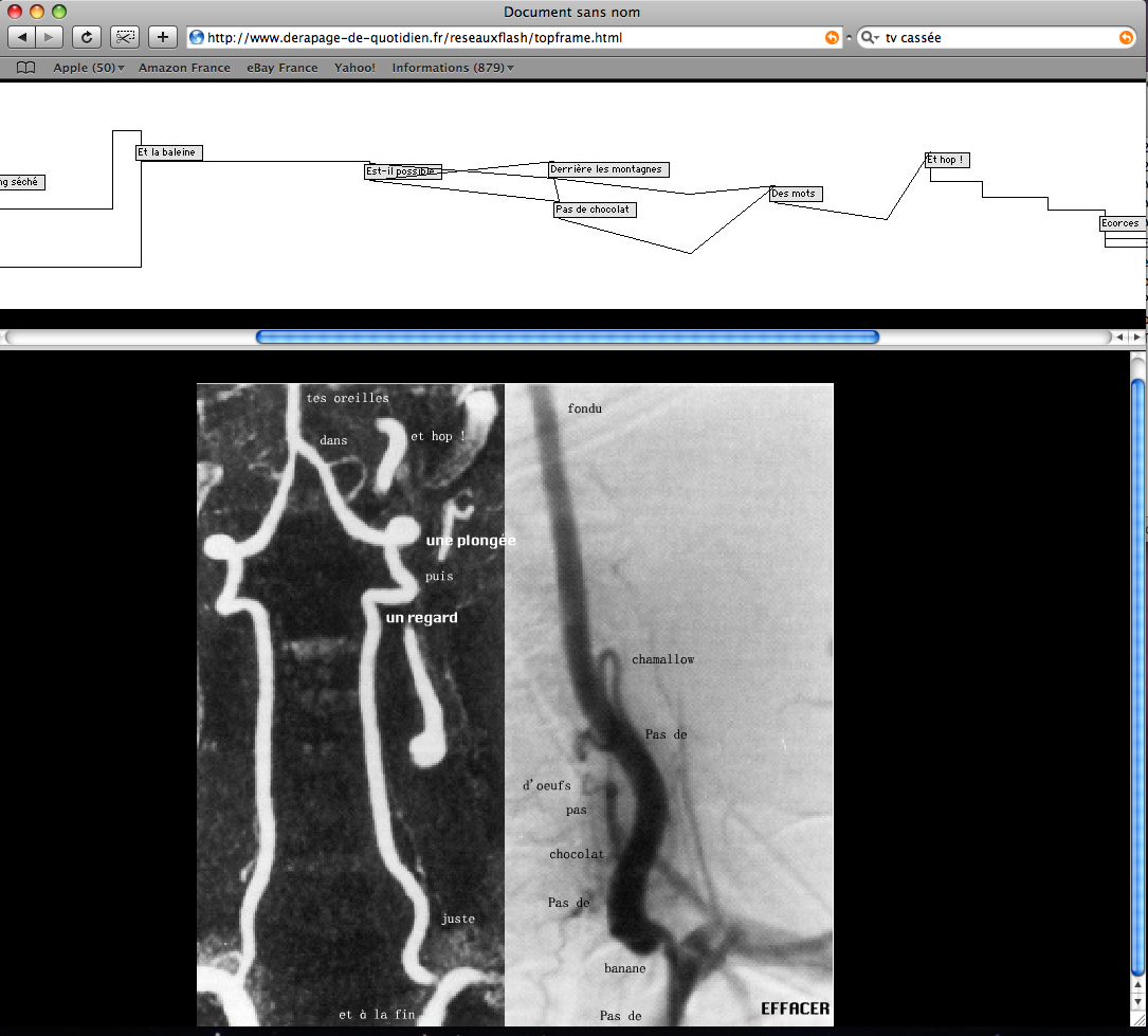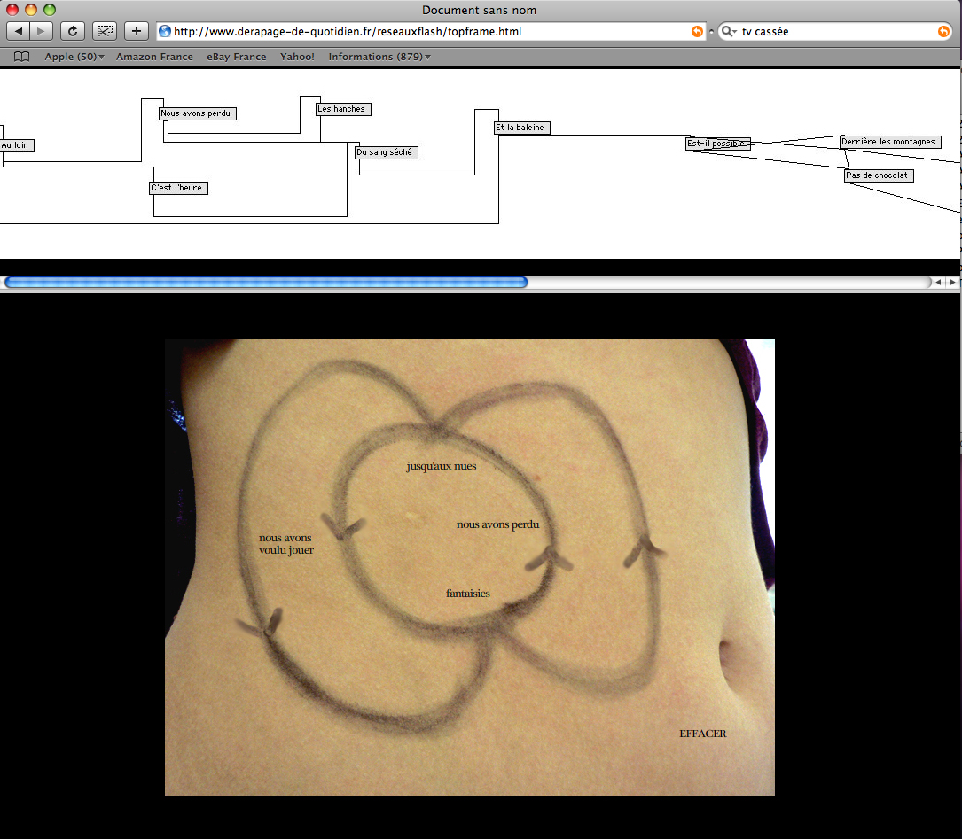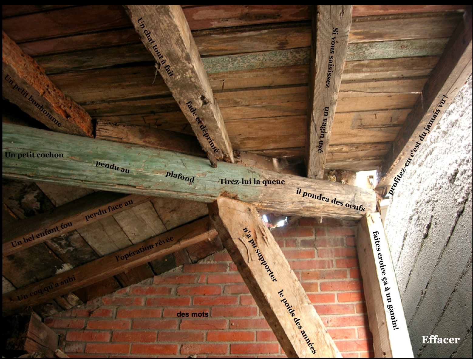 C’était un projet flash, les mots apparaissent sur l’image au fur et à mesure du passage de la souris.