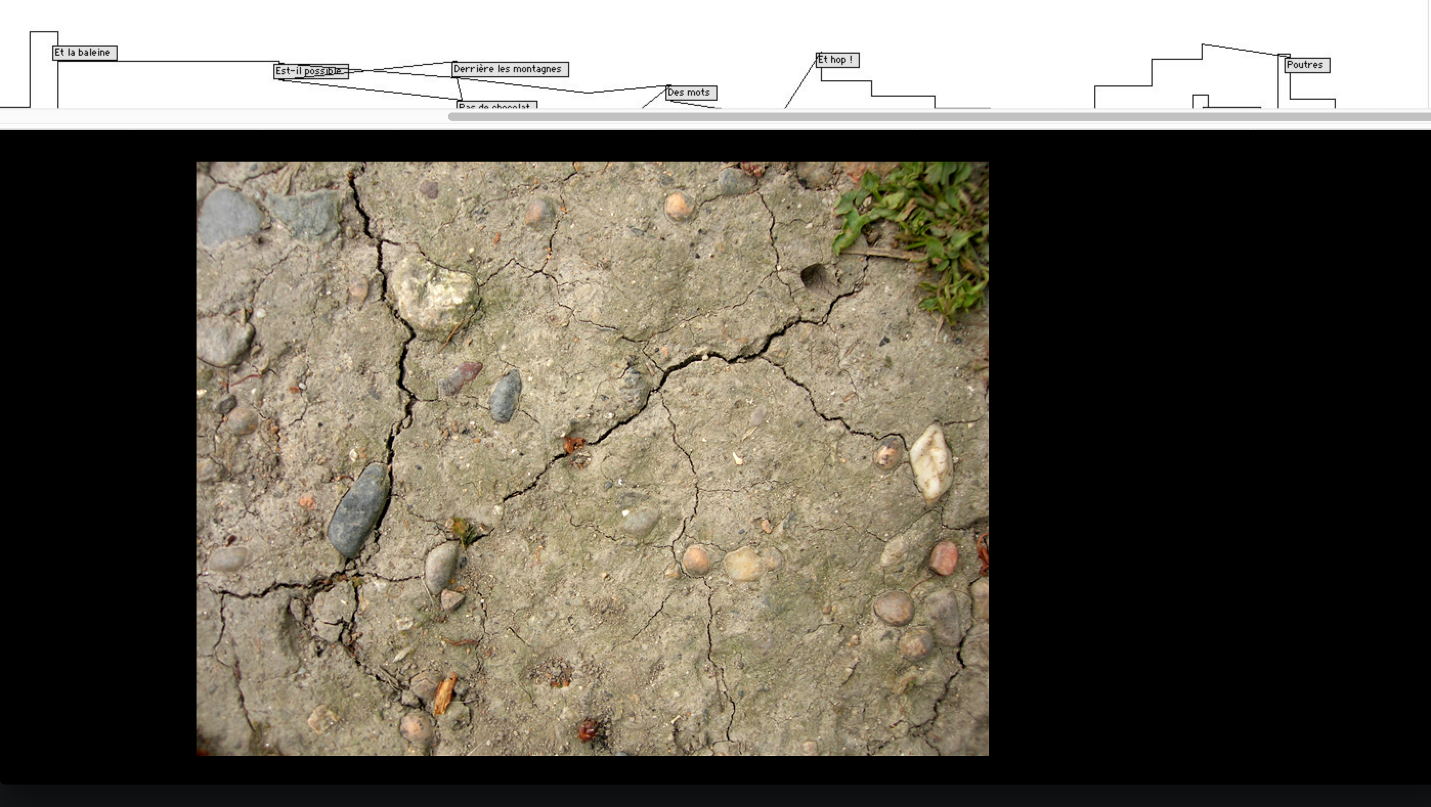 Donc en fonction du chemin que l’on suit, les images poétiques générées seront différentes. J’ai soit créé des chemins d’après des poèmes, soit pris des photos de motifs où je voyais exister des chemins, et j’écrivais le multi-poème en fonction.